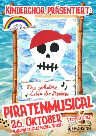 Das Musical “Das geheime Leben der Piraten" wird am 26. Oktober in der Mehrzweckhalle Nieder-Weisel Premiere feiern (Einlass und Kuchenbuffet ab 14 Uhr, Aufführungsbeginn 15:30 Uhr).
